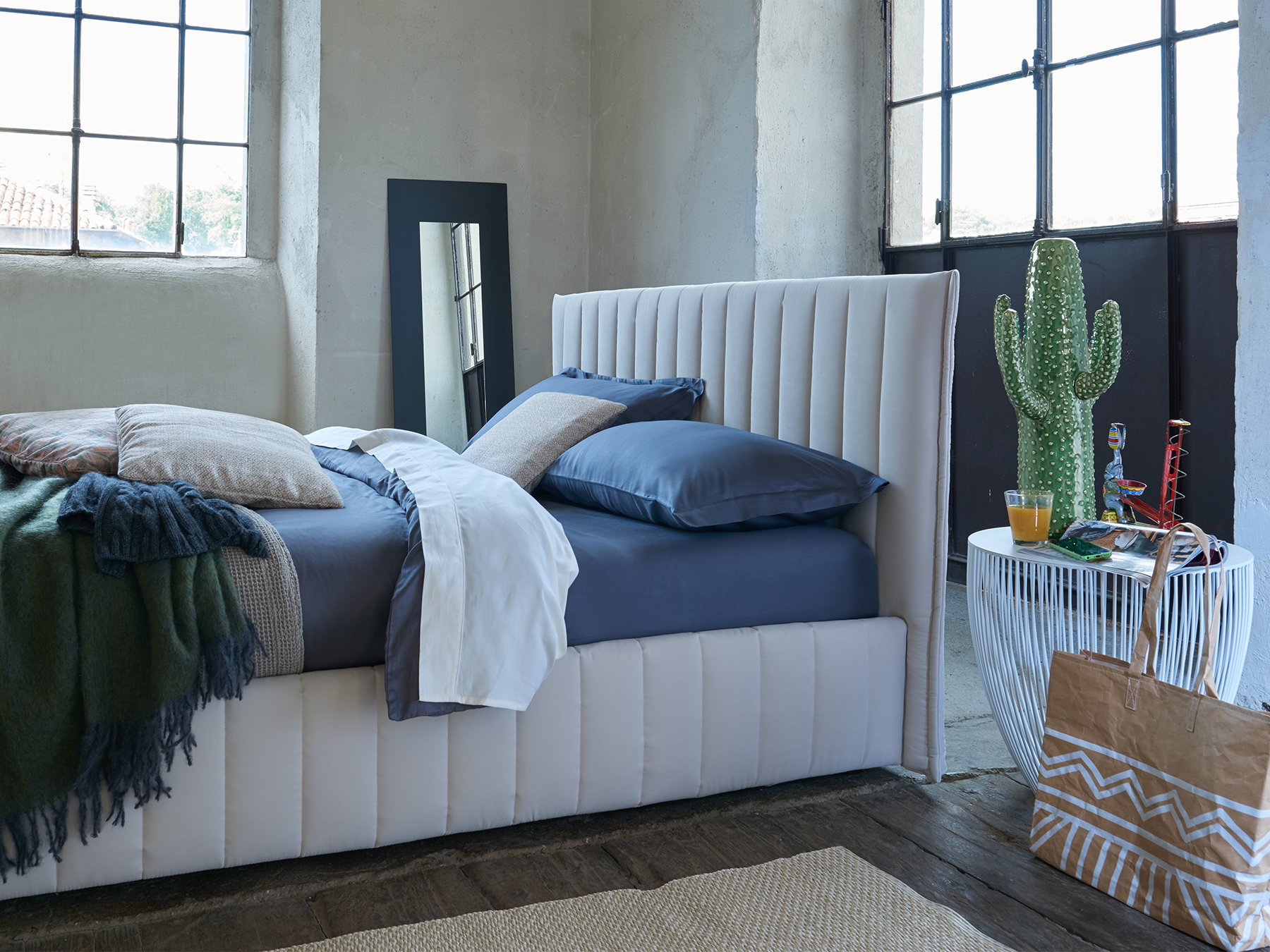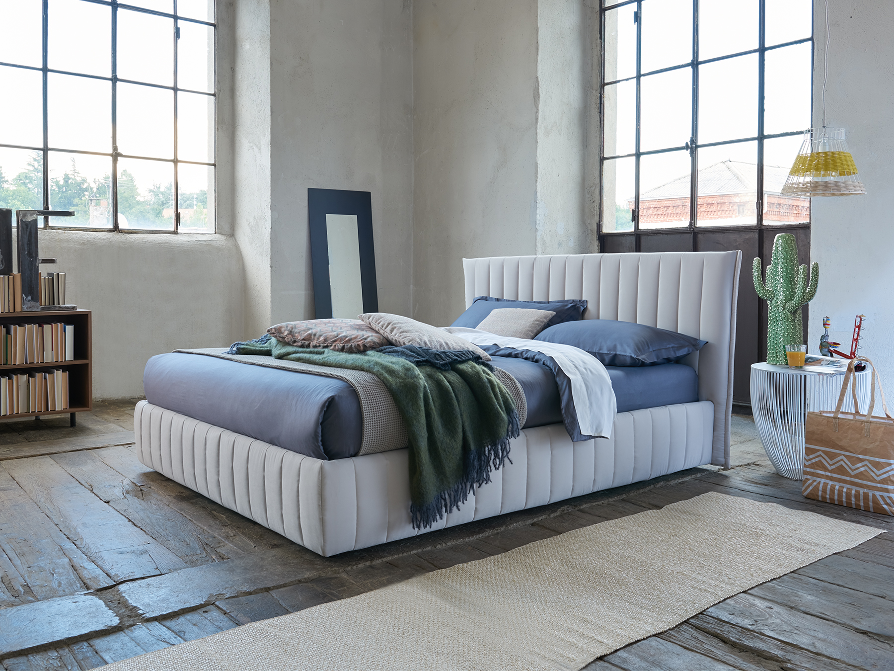 Darron di Dorelan è un modello giovane, ad un tempo spiritoso e romantico. Letto imbottito dal design soffice, vanta una trapuntatura verticale che culmina in una testiera ampia, accogliente e morbidissima.