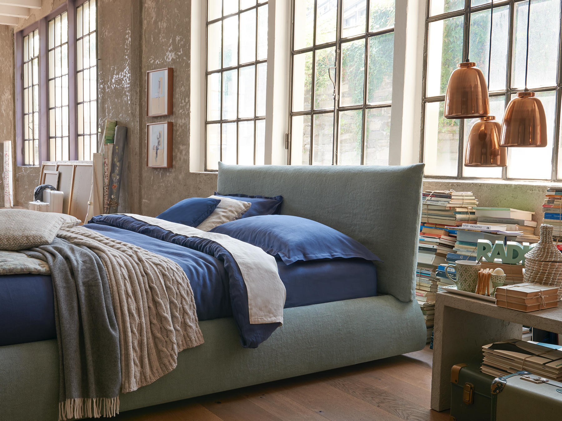 Accoglienza e comfort assoluti sono le caratteristiche di Pillow di Dorelan, dal design eclettico e anticonformista. La sua testiera è pensata come un guanciale destrutturato e soffice, che consente di vivere il letto come un’isola di totale relax.